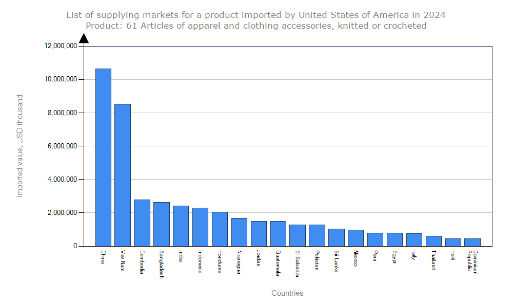 List of exporters for the selected product